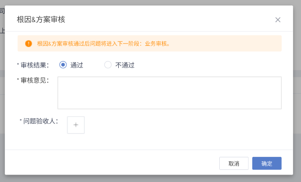 (7)业务审核:此流程步骤需要问题验收人审核问题根本原因和解决方案,问题验收人可以在此添加审核意见及以下操作操作。